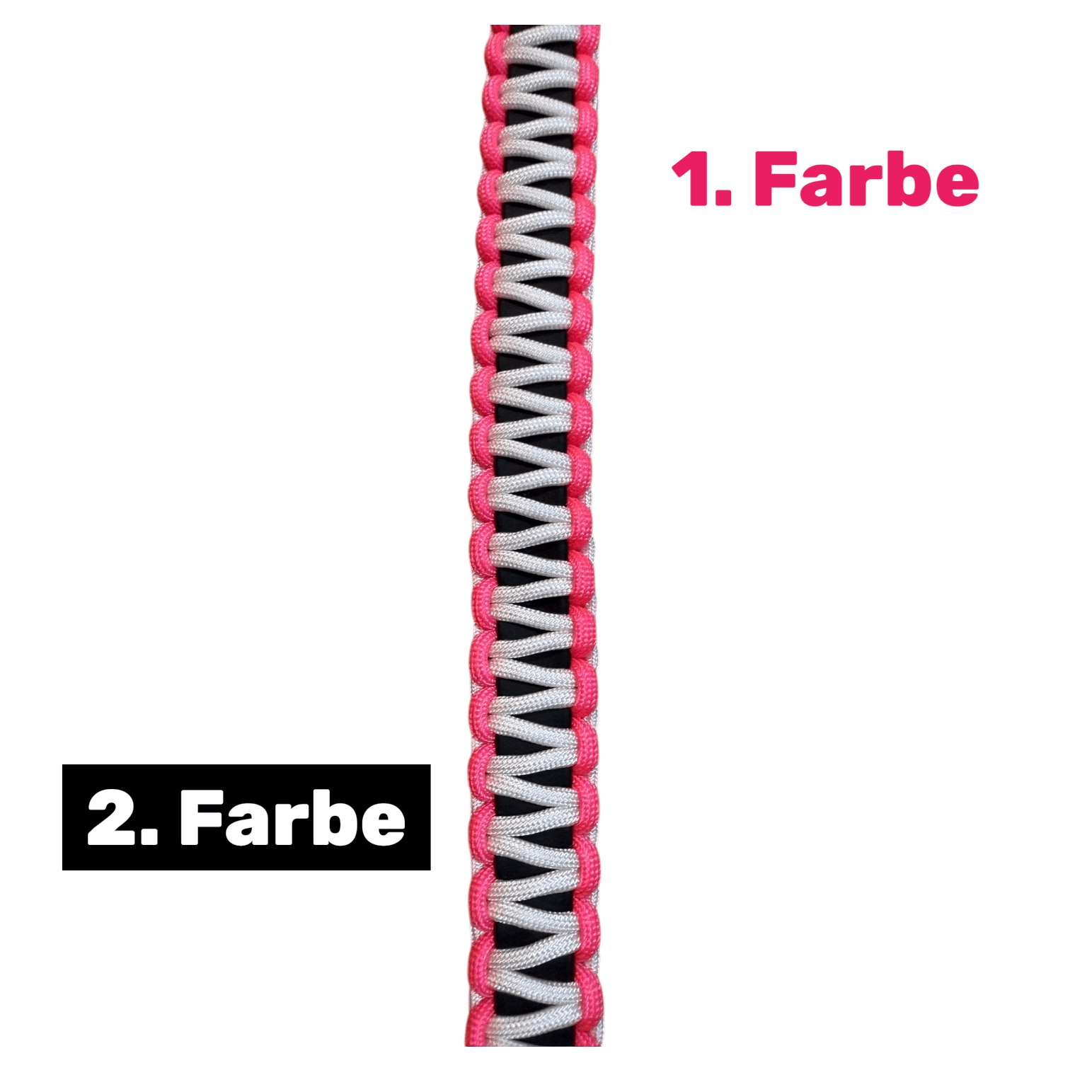 Wähle aus einer Vielzahl an Farben und Flechtarten und stelle dir dein ganz persönliches Paracord-Halsband zusammen. Gerne beraten wir dich bei der Farbkombination oder erstellen dir auf Wunsch ein passendes Set mit Leine!